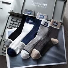 袜子男士春秋款中筒100%正品纯棉防臭吸汗秋冬季加厚条纹男款长袜