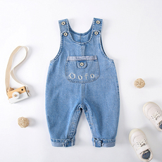 儿童软牛仔背带裤子春秋男女宝宝背心式无袖宽松哈衣婴幼儿连体裤