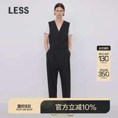 LESS春秋V领连体衣女V领通勤气质拼接撞色短袖连体裤2N7F11360