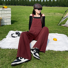 安可拉红减龄牛仔背带裤女春秋季新款显瘦慵懒风气质阔腿连体长裤
