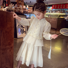女童连衣裙女孩超仙古风汉服套裙2025春装新款洋气儿童国风两件套