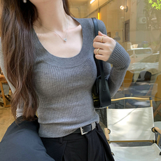 复古U领冰丝针织衫女欧洲站2026春装新款欧货女装时尚打底小衫潮