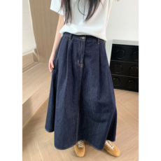 胖mm春秋牛仔半身裙女大码女装梨形显瘦遮肉复古a字裙子毛边长裙