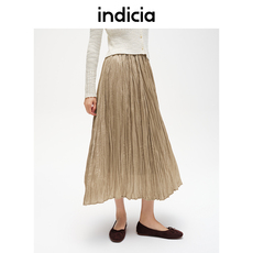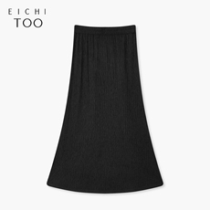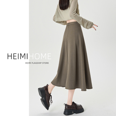 紫涵压褶中长款半身裙女春秋季新款高腰遮肉显瘦休闲纯色a字裙子