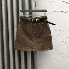 咖啡色高腰显瘦牛仔短裙女春夏时尚洋气百搭A字开叉打底半身裙子