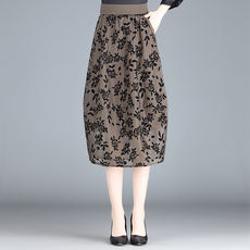 半身裙长款松紧腰适合胯大仙女中长裙子大码女花边春夏蕾丝风半裙