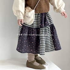 小苹果2025春秋女童宝宝百搭洋气格子碎花拼接半身裙儿童时髦裙子