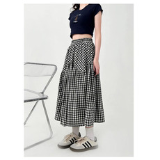 胖mm大码格子半身裙女2-300斤春夏新款中长款A字裙子宽松大摆伞裙