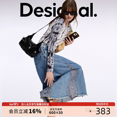 Desigual明星同款高腰显瘦牛仔半身裙夏季裙子女春季A字镂空拼接