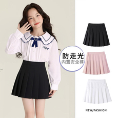 垂感松紧高腰百褶春秋新款半身裙女防走光小个黑色显瘦A字短裙子