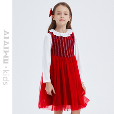 女童红色连衣裙2025大童公主裙儿童生日裙子春秋宝宝周岁秋装女宝