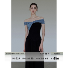 cczee 人间梦露 法式露肩连衣裙女收腰修身显瘦开叉中长款针织裙