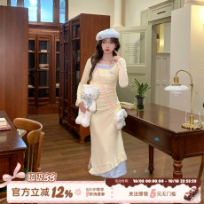 织物猪 海盐甜心 甜欲风针织长袖连衣裙女秋季修身显瘦包臀长裙子