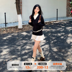 LaceMade 庞贝的琴音 法式田园黑色针织打底连衣裙秋长袖通勤显瘦