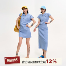 吴童童翻领刺绣短袖针织连衣裙女夏季韩系设计感收腰显瘦A字裙子