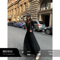 辰米范 黑色吊带连衣裙女修身大摆裙2025新款收腰显瘦针织长裙