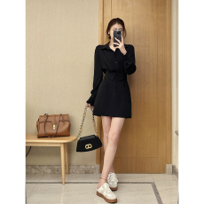 Kendall肯豆同款黑色显瘦衬衫连衣裙女修身气质裙子赫本风小黑裙