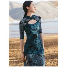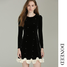 Garbociaga龍喜儿 黑夜玫瑰 香蕉袖修身显瘦赫本风连衣裙女夏3386