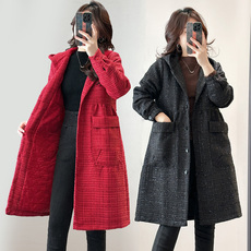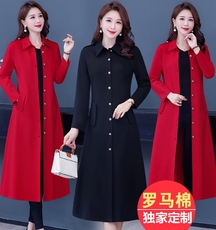 中老年女士秋冬装新款中长款风衣大码妈妈装修身显瘦西装领薄外套