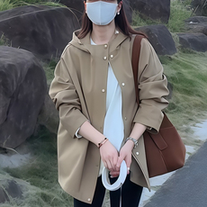 连帽风衣外套女2025秋季新款韩版中长款单排扣休闲百搭显瘦上衣潮