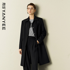 颜域黑色中长款宽松风衣女2025秋装新款优雅大气显瘦英伦外套大衣