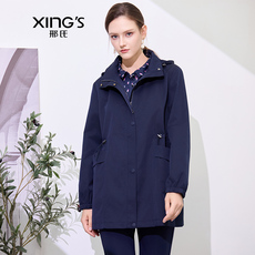 【挺括有型】暇步士秋季中长款连帽风衣女士气质收腰显瘦休闲外套