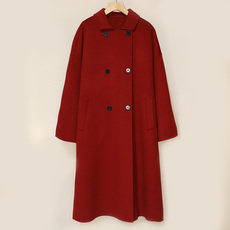 【正正红】翻领双排扣双面呢大衣女中长款气质轻奢显瘦风衣外套