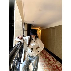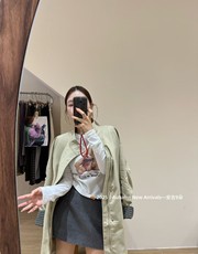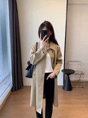 米蓝汇7188韩国时尚高级感中长款宽松显瘦收腰系带翻领风衣外套女