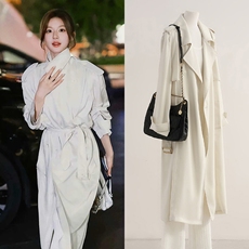 赵露思同款白色风衣外套女秋新款宽松中长款系带收腰显瘦过膝大衣