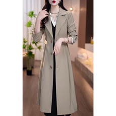 25秋女装新品修身加长款修身显瘦大码风衣女长袖翻领女式大衣外套