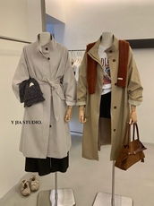 韩系复古英伦风立领风衣女宽松显瘦收腰小个子中长外套