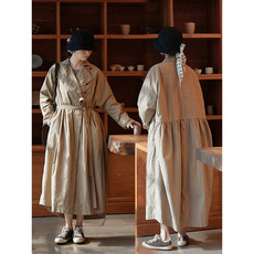 立领日系浪漫文艺水洗肌理棉风衣丨显瘦赫本风长款外套6893