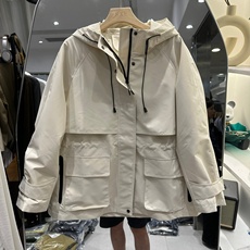 出荷兰单!女秋款经典百搭连帽户外防风保暖中长款显瘦风衣外套