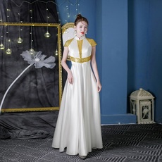 紫缘萱中式刺绣白色礼服年会晚装长款宴会合唱服模特团体演出服女