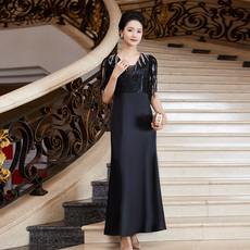 多丽琦新款礼服裙宴会主持连衣裙黑色长款减龄晚装活动聚会短袖女
