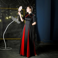 中国风高档长款礼服黑色短袖舞台合唱模特走秀舞台演出宴会晚装女