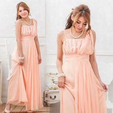 无袖连衣裙子女士姐妹裙长款雪纺长裙坠地伴娘服晚装小礼服裙913