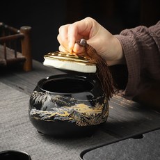 日式鎏金铁釉茶叶罐大号密封茶仓陶瓷储物罐铁观音红茶普洱存茶罐