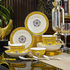 高端骨瓷饭碗盘子菜盘碗碟新婚送礼景德镇餐具碗盘套装家用高级感
