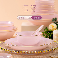 粉玉瓷釉下彩碗碟套装家用轻奢景德镇陶瓷餐具2025新款乔迁新居