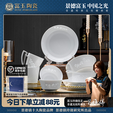 富玉官方陶瓷景德镇餐具套装家用影青玲珑碗碟套装高级感乔迁礼物