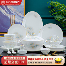碗碟套装家用景德镇陶瓷碗盘套装家用高温吃饭碗乔迁陶瓷餐具套装