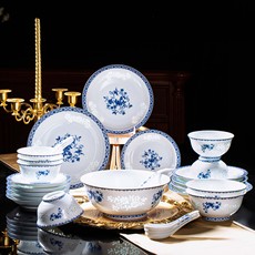 高档景德镇骨瓷餐具套装釉中彩家用碗碟中式青花陶瓷56头碗盘套装