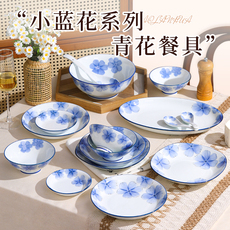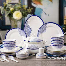 蓝色梦幻景德镇中式碗碟套装家用菜盘子简约汤碗骨瓷餐具吃米饭碗