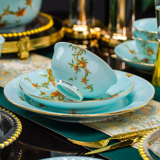 碗碟套装家用高档青瓷欧式金边景德镇陶瓷餐具自由组合碗盘