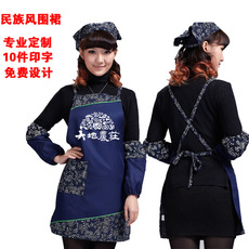 名族风田园农家乐酒店服务员围裙小碎花拼接韩版时尚围裙定制印字