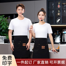 围裙餐饮专用定制logo印字咖啡奶茶店服务员防水围腰员工工作服女