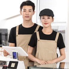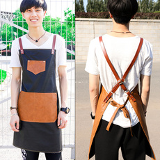 奶茶店服务员工作服背带式围裙定制厨房咖啡厨师做饭帆布围裙男女