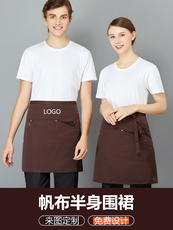 半身帆布围裙围裙定制logo餐饮烘焙咖啡店服务员专用半截工作围腰