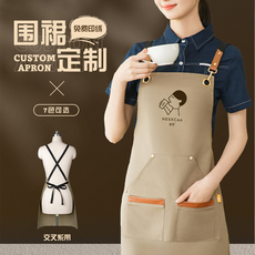 高端帆布围裙定制印字logo餐饮烘焙奶茶咖啡店专用服务员工作服女